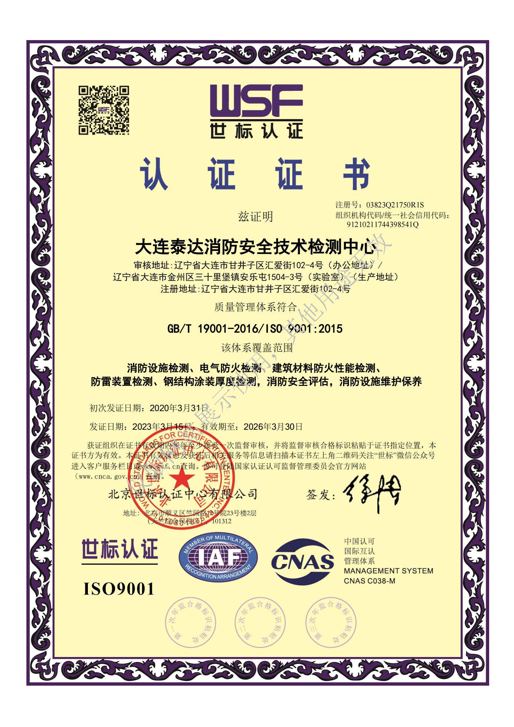 大連泰達(dá)消防安全技術(shù)檢測(cè)中心