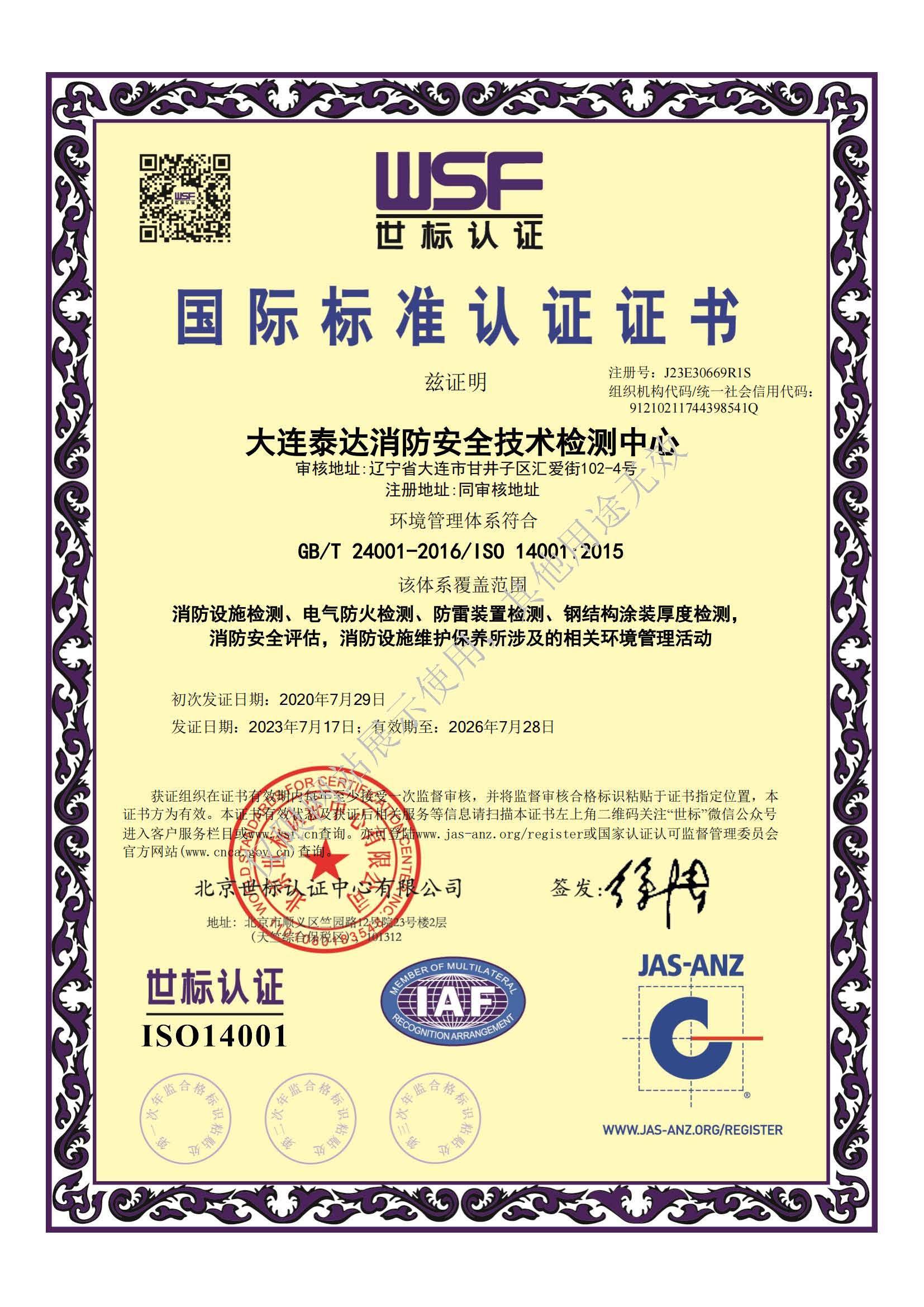 · 是經(jīng)“社會(huì)消防技術(shù)服務(wù)信息系統(tǒng)”備案并公示的消防技術(shù)服務(wù)機(jī)構(gòu),已取得中國(guó)氣象局頒發(fā)的雷電防護(hù)裝置檢測(cè)資質(zhì)證書(shū)、遼寧省質(zhì)量技術(shù)監(jiān)督局審核批準(zhǔn)的檢驗(yàn)檢測(cè)機(jī)構(gòu)資質(zhì)認(rèn)定證書(shū)(CMA)及包括消防檢測(cè)、電氣檢測(cè)、雷電防護(hù)裝置檢測(cè)、防火涂層厚度檢測(cè)等在內(nèi)的200余項(xiàng)檢驗(yàn)檢測(cè)能力,取得大連市應(yīng)急管理局頒發(fā)的安全生產(chǎn)標(biāo)準(zhǔn)化證書(shū),獲得質(zhì)量管理體系、環(huán)境管理體系、職業(yè)健康安全管理體系認(rèn)證證書(shū),是經(jīng)備案的高新技術(shù)企業(yè),可獨(dú)立出具具有證明作用的檢測(cè)報(bào)告。